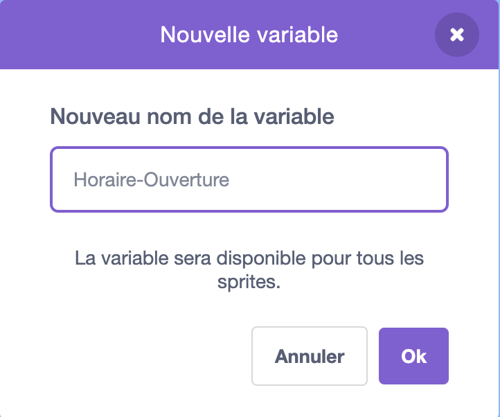 Créer une variable pour tous les sprites nommée : "Ouverture"